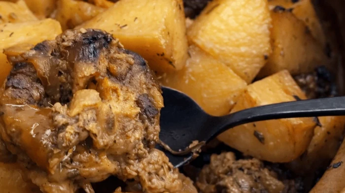 Gât de curcan fiert cu cartofi – o rețetă simplă, la prima vedere, în interpretarea bloggeriței culinare Anastasia Tsarlova se transformă într-un hit domestic în toată regula – aromat, fraged și surprinzător de bogat.